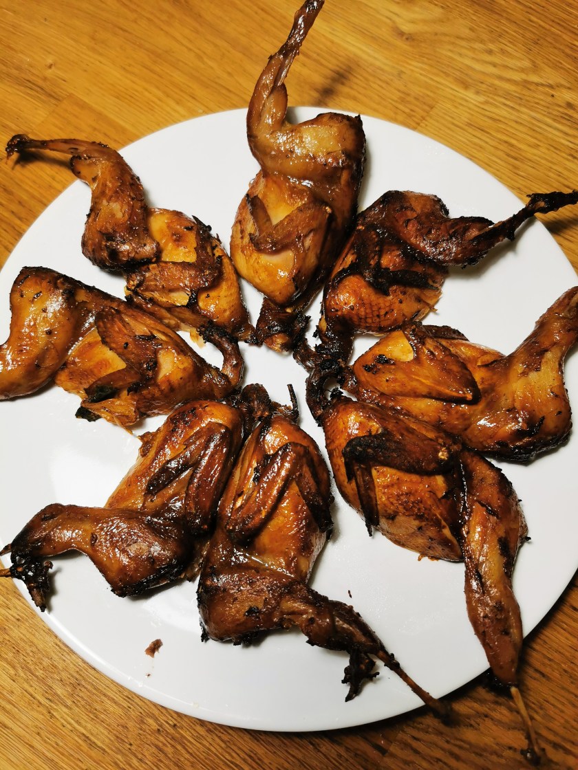 Cut your belly roll into small pieces and put the sauce on the top or on the side, finished.