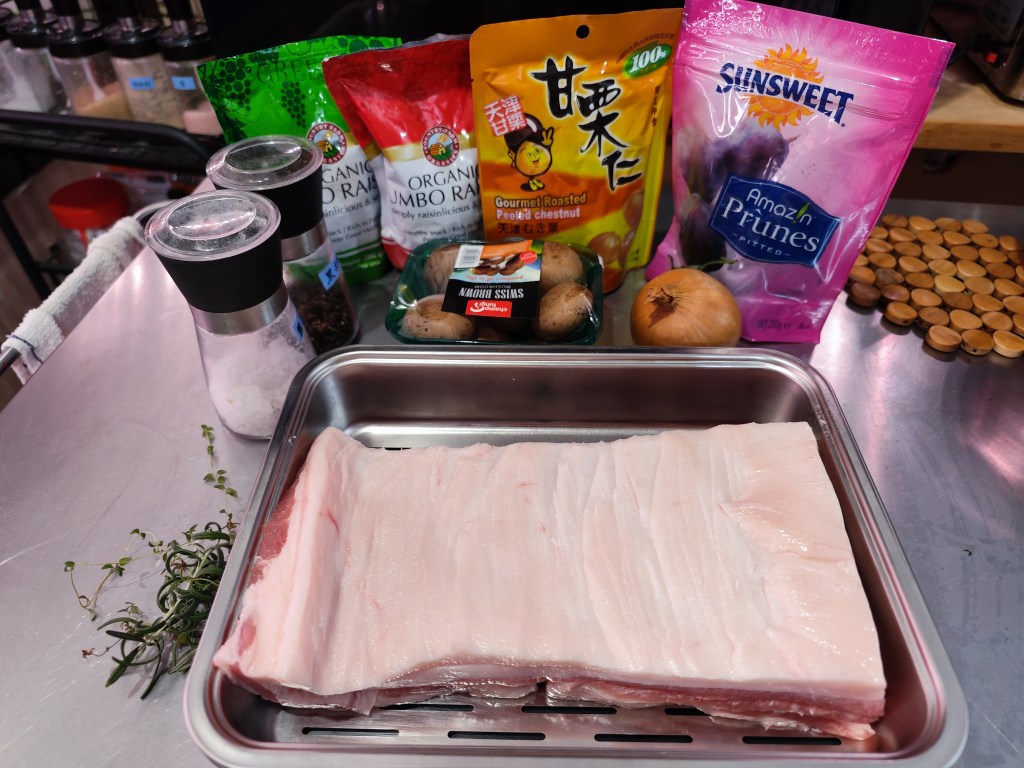 My beloved one so busy recently, so I just use pork belly that on my hand, then I need to make change for it and create this recipe. You can use pork loin or tenderloin for this recipe, but you have to adjust your own time and temperature.