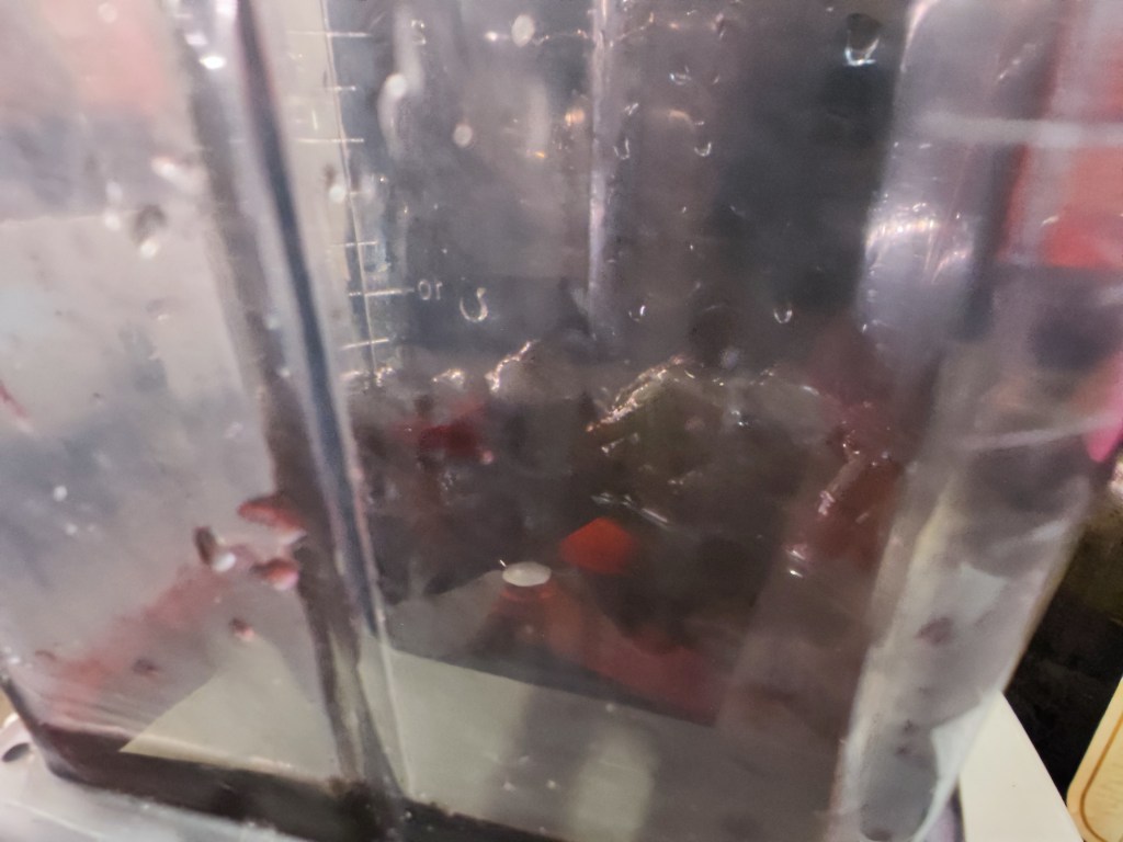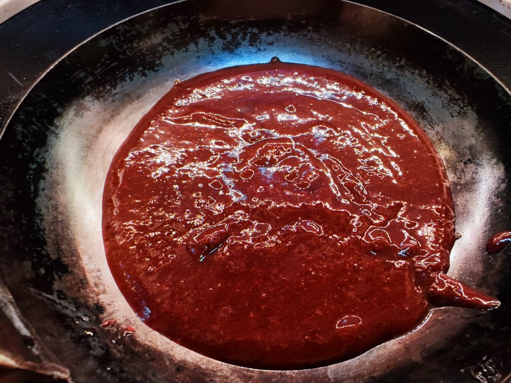 Final step, prepare the thick sauce, use the remaining dried prunes, red wine and add some red wine vineager into vitamix to make a thick sauce, then heat up a bit (If your mixer have heater option, please use it, it’s easier)