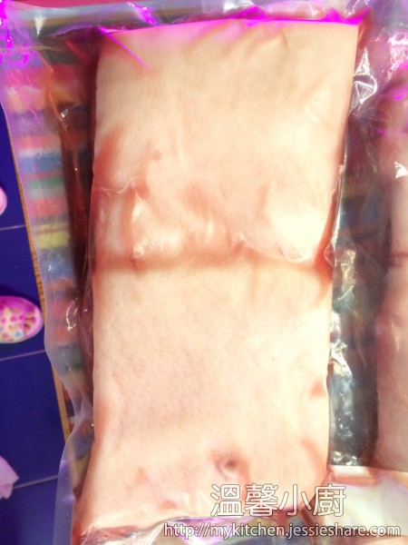 1. 先清洗一下,用紙印乾,然後把豬皮慢慢地用刀分開,豬皮可以留作其他用途的,不要棄掉;