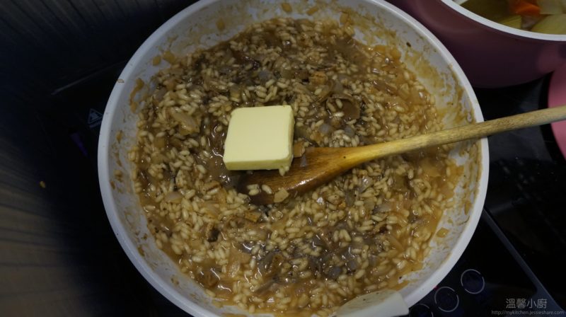 8. 見意大利飯開始差不多脹大一倍以上,試試是否適合自己的口感,可以的話就可以熄火