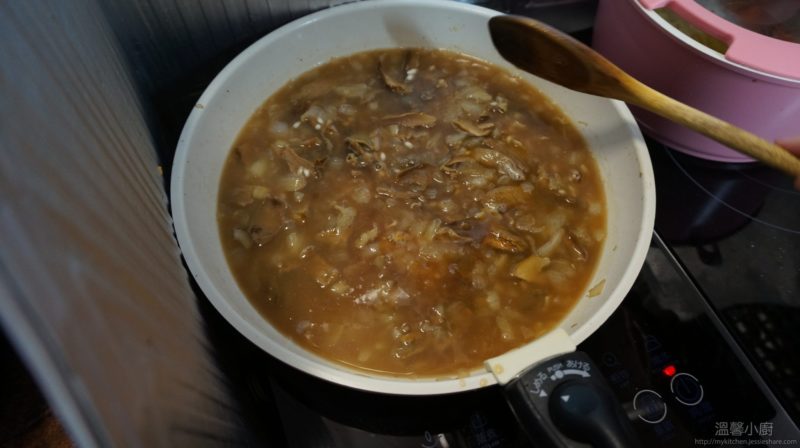 7. 當水份不足時,就加入菜湯,大約加3-4次
