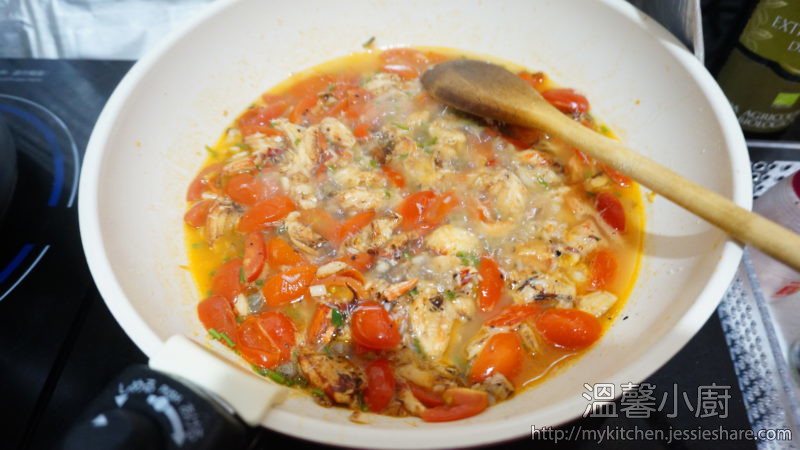 3. 加入蟹肉,再加多少少白酒,煮一會