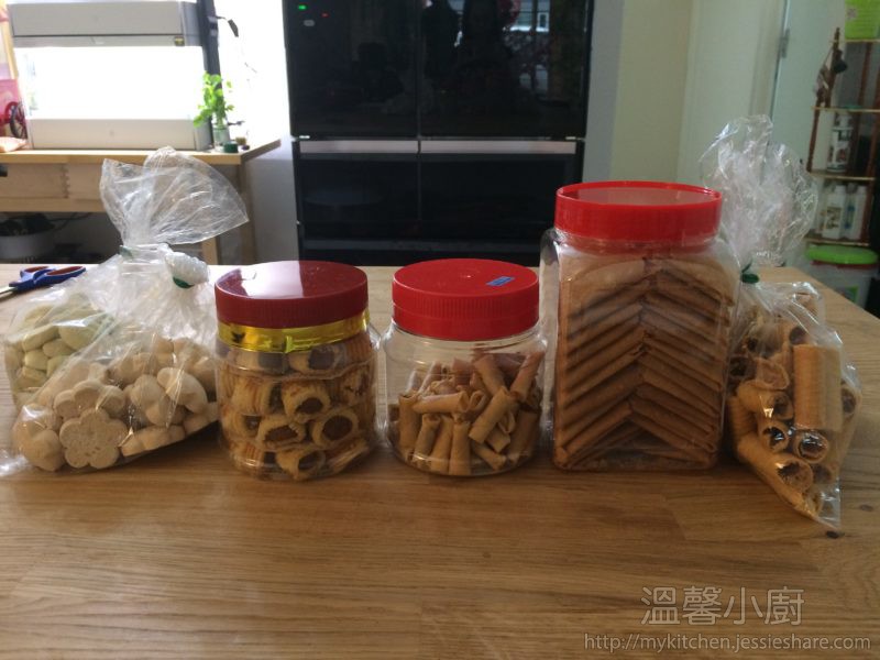至於食物方面,香港會有很多糕點 :年糕、蘿蔔糕、紅豆糕等等;全盒會有糖冬瓜、瓜子、糖、朱古力等;然而馬來西亞華人除了蕉葉年糕外,就沒有其他糕點,但他們喜愛吃薯粉餅、鳯梨酥/卷、椰汁脆餅、豬肉乾等等。