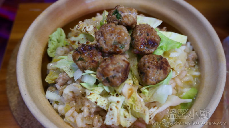 13. 把餘下的椰菜絲放上面,以及香腸球,再倒入少量意大利黑醋就完成了。