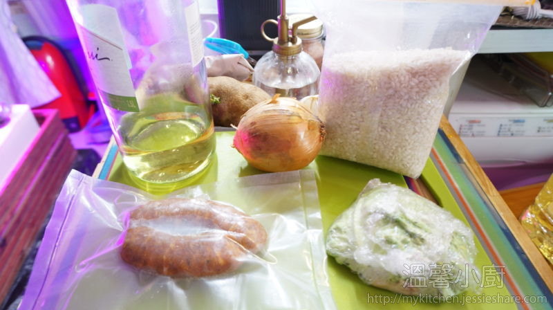 之前介紹了如何做香腸,做好後除了煎,也可以用來做不同的菜式,今次就簡單地用香腸來做個意大利飯吧。