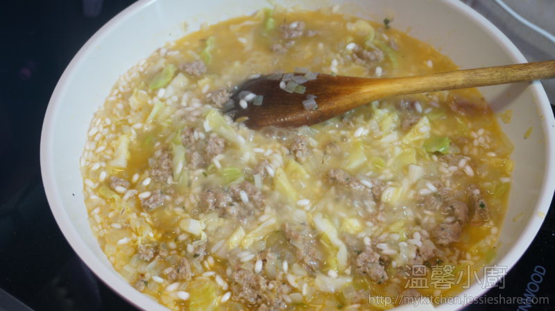 11. 一直加一直煮至米粒脹身 (大約20分鐘),直至你喜歡的軟硬度就可以關火