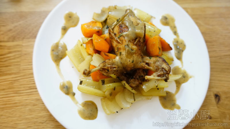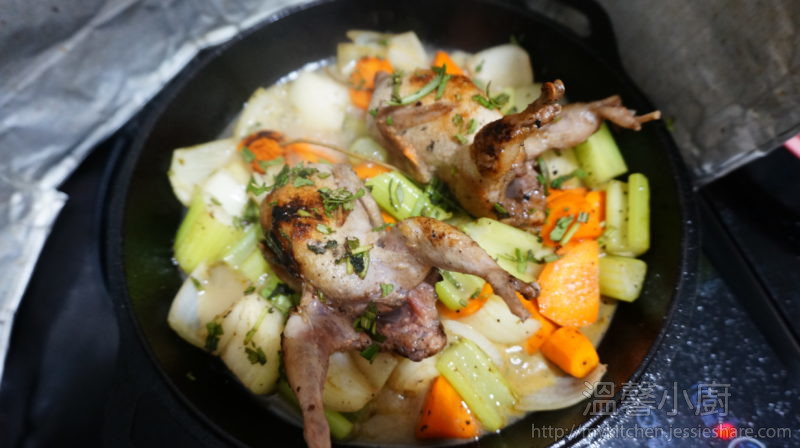 溫馨提示 : 這個菜式在意大利會伴麵包吃,但個人喜歡的話,可以加入其他蔬菜 (例如 : 紅蘿蔔、西芹、薯仔等等),那麼烤好鵪鶉後先盛起,再放入焗爐烤多10分鐘就可以了。