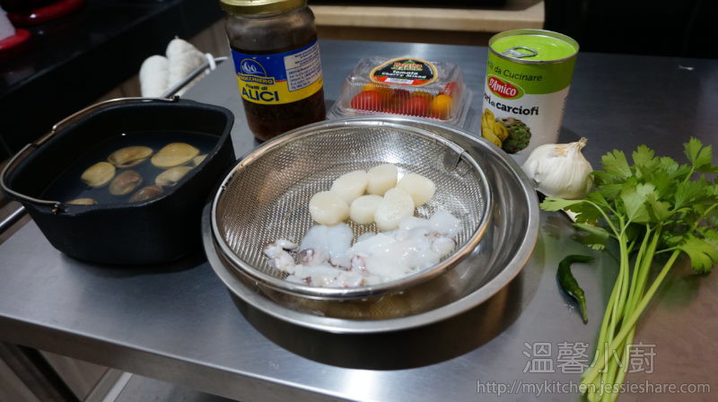 1. 先把海鮮在水喉下沖洗一下,備用