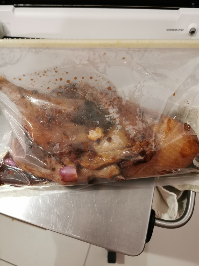 5. 把鴨及煮好的醬料放入真空袋,烹煮時間為6小時30分鐘