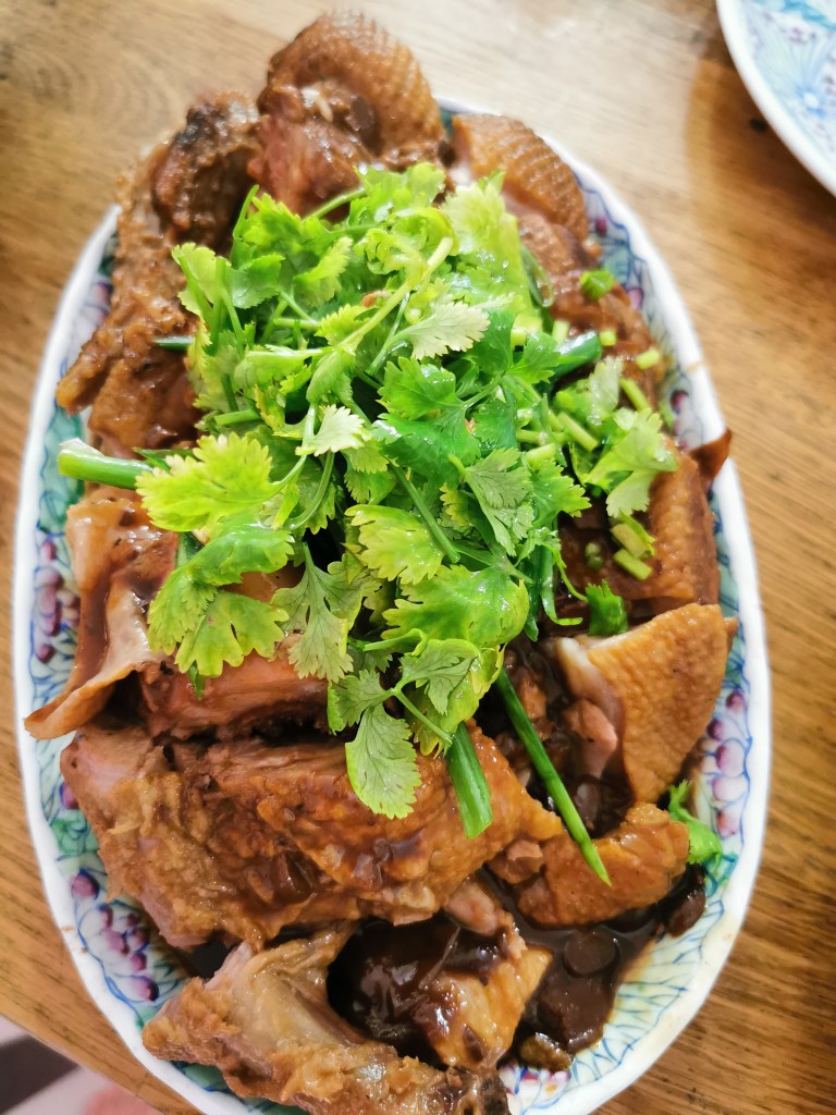 After cooked, carefully pull out the duck and cut into small pieces, set aside