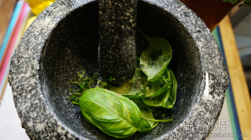Finally, add the rosemary on the top, lid on and cook more 5 minutes, then gas off and remain lid on for the last 5 minutes, finished.