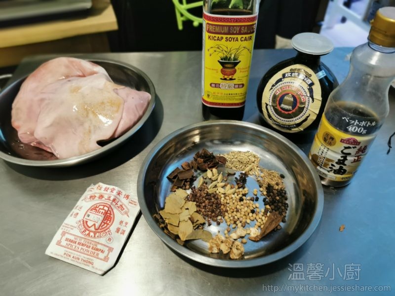 作者只用半隻鴨來作參考,讀者也可以做全鴨,但請把鴨打開及需把分量加一倍就可以了。