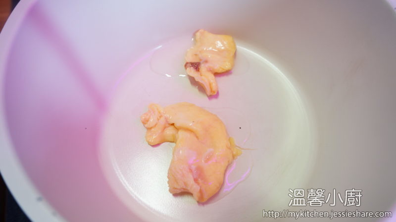 11. 把雞切開及去骨, 然後平均地塗上少許麻油在雞皮上