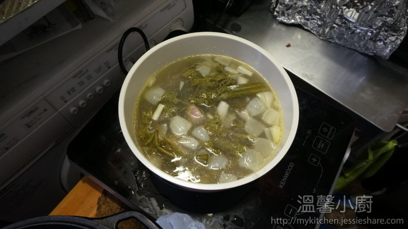 7. 放入魚頭及倒入清水至蓋過九成魚頭